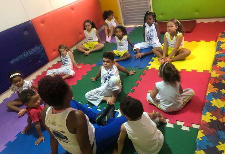 A prática da capoeira nas crianças promove o desenvolvimento físico, social e cultural, estimulando a coordenação motora, a disciplina, a expressão corporal e o respeito às nossas raízes culturais de forma lúdica e envolvente