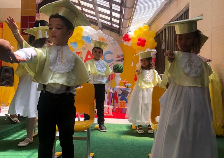 Estamos imensamente orgulhosos por tudo o que nossas crianças aprenderam e se tornaram ao longo dessa jornada. Temos a certeza de que o futuro será ainda mais brilhante, repleto de conquistas e novas experiências. Parabéns aos nossos formandos por concluírem essa linda fase!